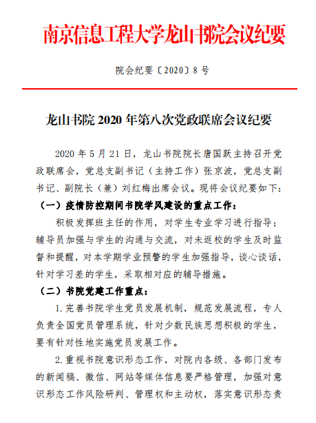 下一条:中共南京信息工程大学龙山书院委员会纪要(2020年第4期)
