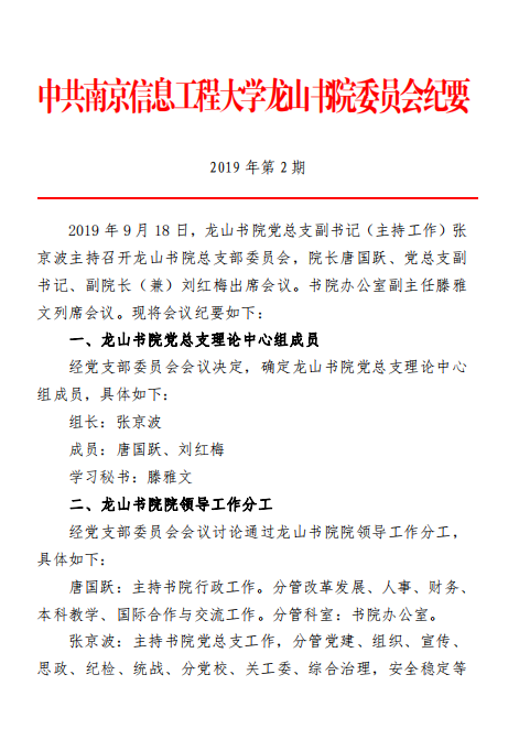 上一条:中共南京信息工程大学龙山书院委员会纪要(2019年第3期)