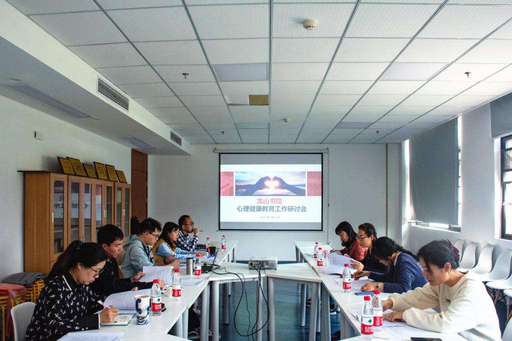 为深入贯彻落实教育部《高等学校学生心理健康教育指导纲要》(教党〔2018〕41号)、省教育厅关于贯彻落实教育部党组《高等学校学生心理健康教育指导纲要》的实施意见(苏教学[2019]8号)及我校心理健康教育工作相关要求,提高龙山书院学生心理危机预防与干预工作专业化水平,2021年3月26日下午,龙山书院心理健康教育工作研讨会在尚贤楼115室举办。本次研讨会特邀校心理健康教育中心主任钱春霞出席,龙山书院全体辅导员参会,会议由党总支副书记兼副院长刘红梅主持。