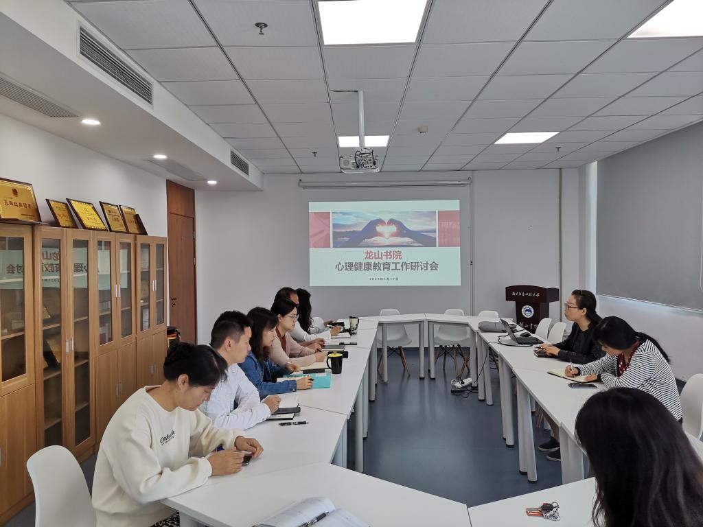 为进一步将心理健康教育工作落到实处,强化危机预防意识,保障心理危机预防与干预工作的信息通畅、判断准确、处理果断,做到心理危机早预防、早发现、早诊断、早处理,5月17日上午,龙山书院在尚贤楼115室举办心理健康教育工作月度总结研讨会。本次研讨会特邀校心理健康教育中心主任钱春霞出席,龙山书院全体辅导员参会,会议由党总支副书记兼副院长刘红梅主持。
