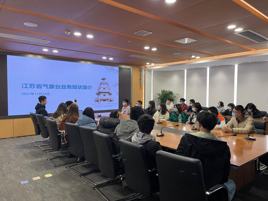 在江苏省气象台的周密安排下,同学们走进江苏省环境监测中心,使同学们直观地了解到生态环境质量监测、重大突发环境事件应急监测等日常工作模式。随后,江苏省气象台首席预报员助理王易围绕工作职责、机构设置、人员情况和开展业务等方面向同学们介绍了江苏省气象台的业务现状。参观结束后,同学们还与气象台的工作人员进行了座谈交流,针对同学们提出的问题,工作人员一一耐心答复,现场讨论气氛热烈。