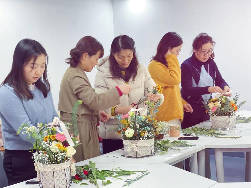 为丰富教职工业余文化生活,提升生活品味,陶冶情操,增进友谊,龙山书院分工会于12月31日下午在尚贤楼302举办“情暖冬日,喜迎新年”主题插花活动,书院全体教职工参加活动。