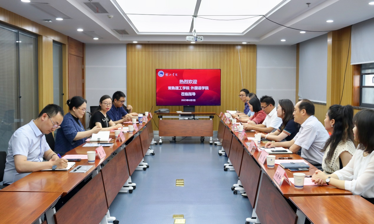 为全面贯彻党中央关于在全党大兴调查研究的重大部署,加强与兄弟院校交流沟通,6月2日,书院邀请常熟理工学院外国语学院院长张良林一行8人莅临我校,展开交流研讨。龙山书院党委副书记兼副院长刘红梅、文学院副院长杜玉生、常熟理工学院外国语学院全体党政领导以及相关工作人员参会。会议由刘红梅主持。