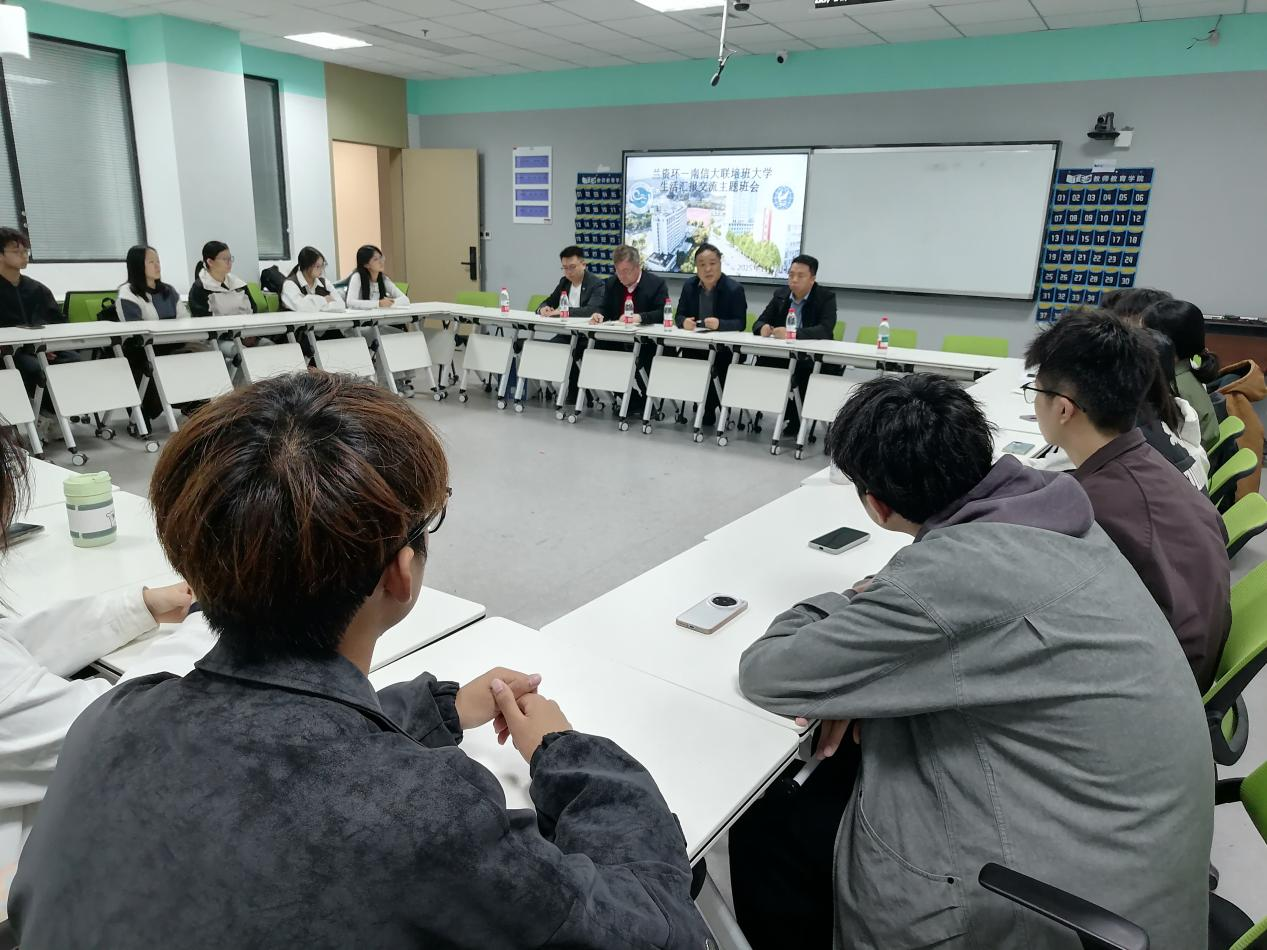 11月8日下午,兰州资源环境职业技术大学气象学院张民院长、时超书记和李凯主任一行访问南京信息工程大学龙山书院,在临江楼B109召开“兰资环-南信大联培班大学生活汇报交流主题班会”。龙山书院副院长裴世鑫、教学秘书吴何琛与联培班全体学生共同参与座谈。