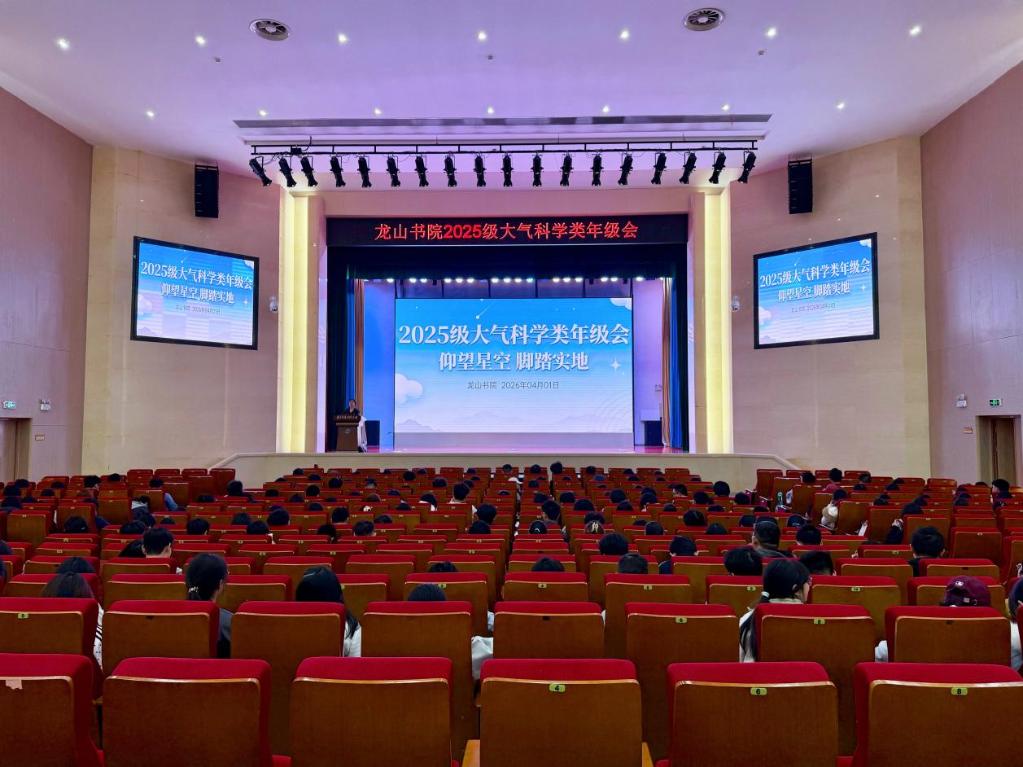 2026年4月1日晚,龙山书院在风云剧场召开了2025级大气科学类专业年级会,会议由书院辅导员汪瑶主讲,全体学生参加。