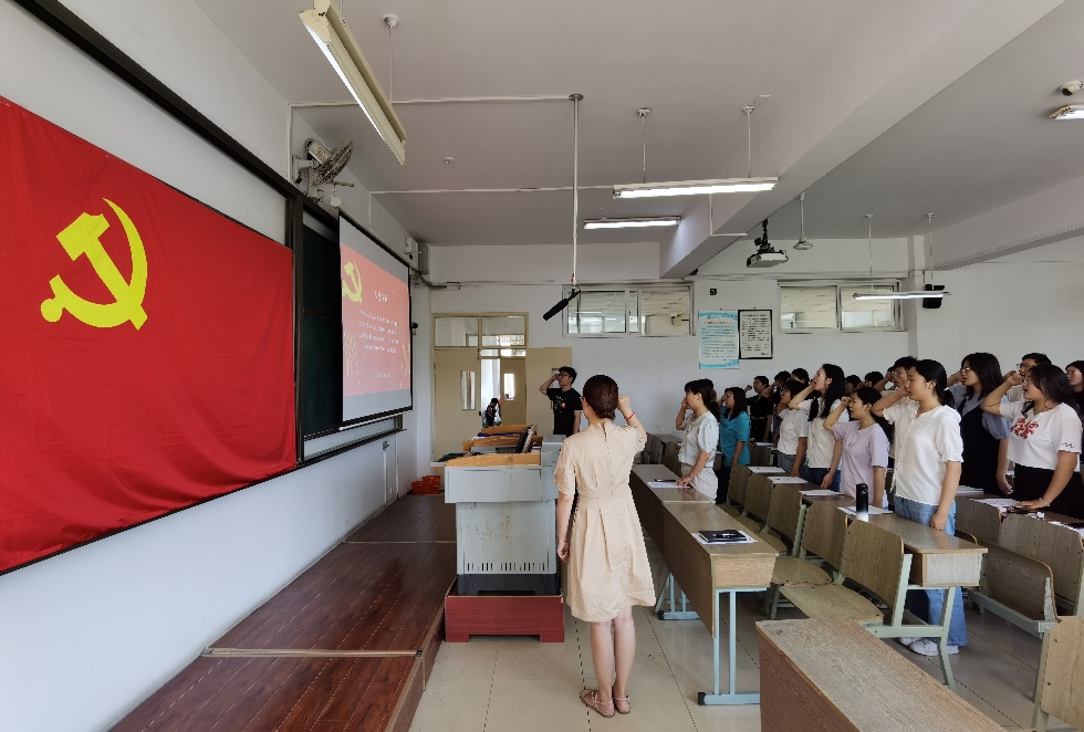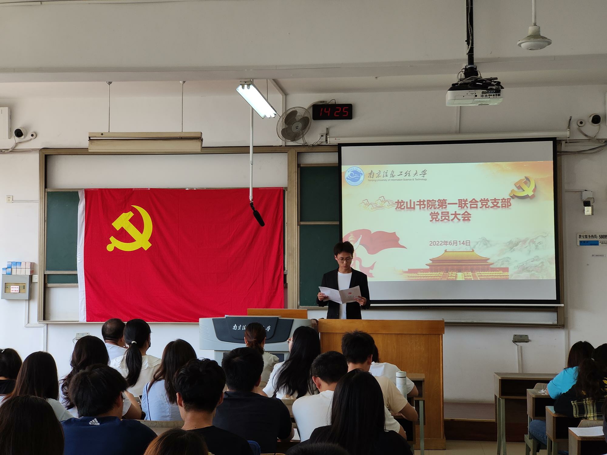 6月14日,龙山书院第一联合党支部在文德楼N413召开了接收预备党员大会,讨论接收谈昊天等51位同志为中共预备党员事宜,会议由支部书记赵雅仪主持。