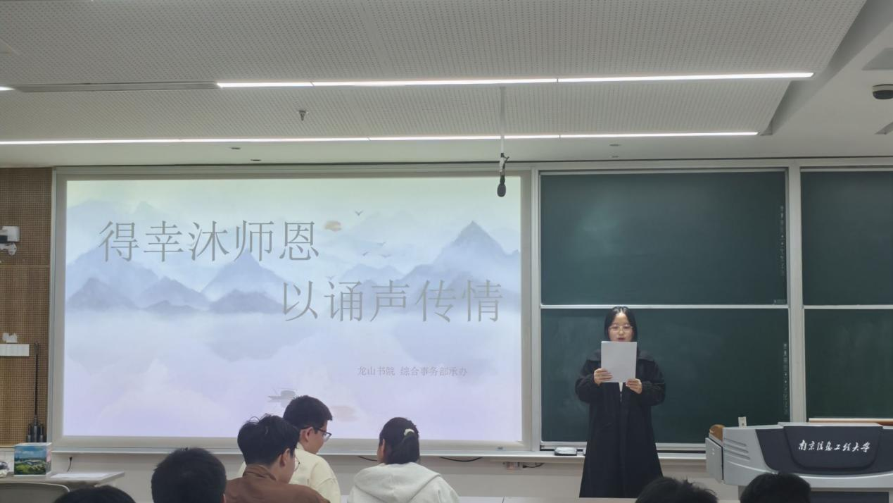 为弘扬中华优秀传统文化,搭建师生情感交流与思想碰撞的平台,11月15日晚,龙山书院于明德楼N215举行“得幸沐师恩,以诵声传情”朗读者大赛决赛。本次活动由共青团南京信息工程大学龙山书院委员会主办,书院学生会承办。